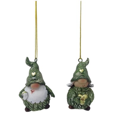 GNOMI CON VESTITO VERDE IN RESINA DA APPENDERE