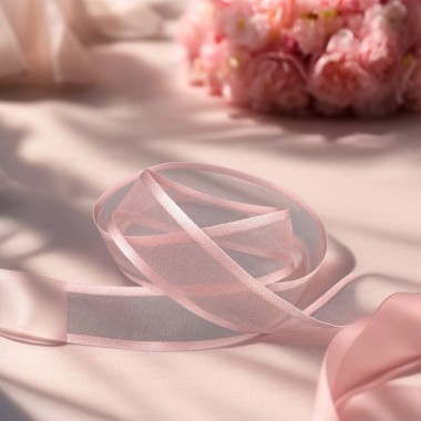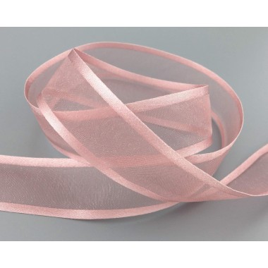 ROTOLO DA 25 MT DI NASTRO ORGANZA BORDATO ROSA 1 CM