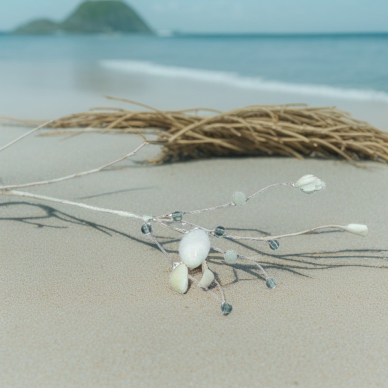 Le delicate conchiglie sono abilmente intrecciate su un rametto con materiali di alta qualità e artigianato accurato, creando un effetto visivo affascinante e unico. Ogni dettaglio è pensato per portare un tocco di natura e mare nella tua vita quotidiana.