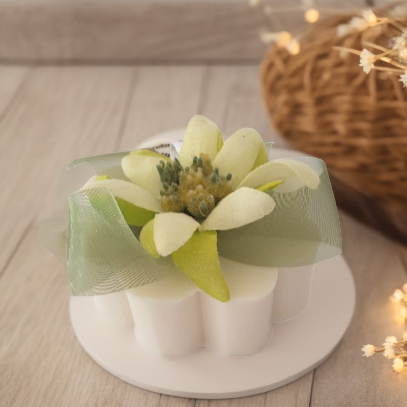 Sapone fiore bianco fragranza muschio bianco decorato stella alpina artificiale.