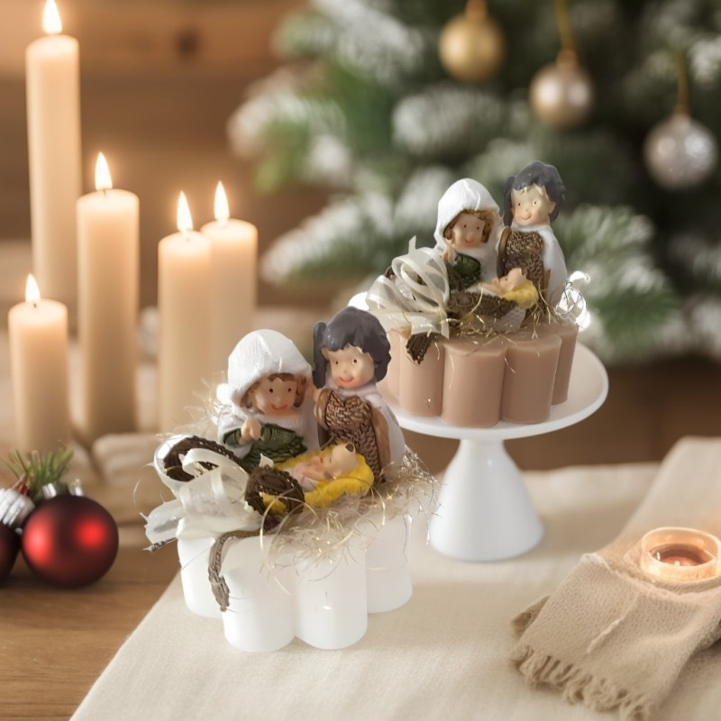 Aggiungi un tocco di magia natalizia alla tua routine quotidiana con i nostri saponi artigianali decorati con una dolce scena della natività. Disponibili in due delicate fragranze: