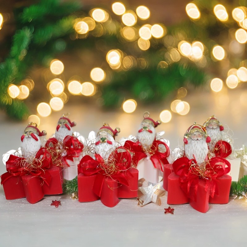Il dettaglio del Babbo Natale i fiocchi rossi rendono questo sapone un accessorio decorativo unico, che unisce profumo, eleganza e spirito natalizio.🌟