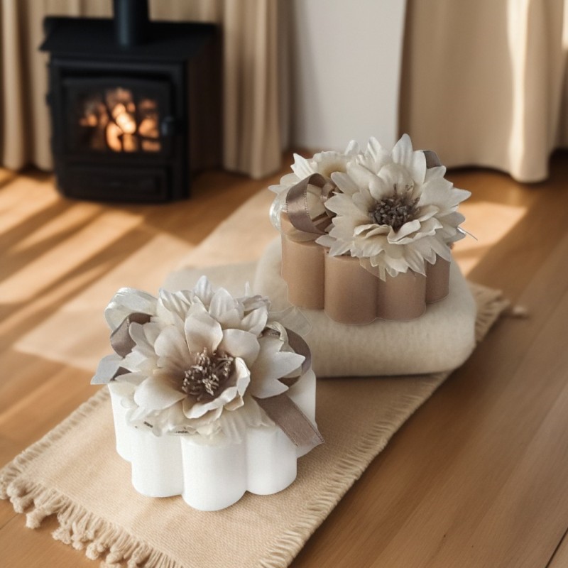 Sapone fiore bianco fragranza muschio bianco o beige fragranza talco decorato fiori in seta.