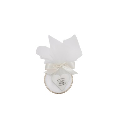 Sapone a cuore bianco profumato al muschio bianco con cerchio in metallo confezionato con tull.